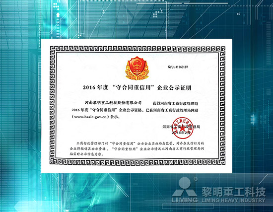 “守合同重信用企業(yè)”是為推動社會信用體系建設(shè),由工商行政管理局批準的一項高規(guī)格企業(yè)評選,以表彰企業(yè)在合同制度管理、合約履行能力以及企業(yè)社會信譽等方面所取得的成績給予充分肯定,獲得評定和公示的企業(yè)皆是各行業(yè)中誠信履約、守法經(jīng)營的企業(yè)。獲此榮譽,黎明重工倍感榮幸。