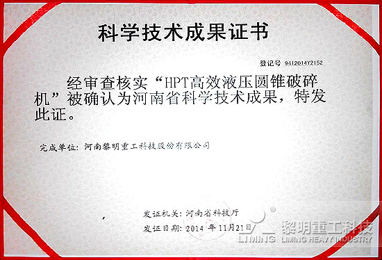 展前捷報:HPT液壓圓錐破、LUM超細(xì)立磨榮獲科學(xué)技術(shù)成果證書