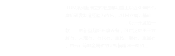 LUM系列超細立式磨主要由電動機、減速機、磨輥裝置、磨盤裝置、加壓裝置、選粉機、機體和油站等組成。它的橫空出世使得一次性完成超細粉的粉磨、分級和輸送作業的設想現實化,其工藝參數、機械性能和成品粉品質等技術指標均與臺灣水平相當。